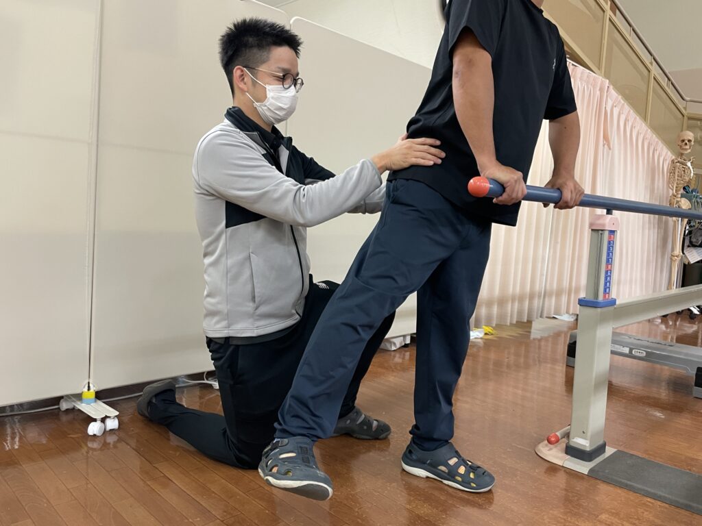 手術の翌日より車椅子、歩行訓練が開始となり、歩行器、杖歩行と段階的にリハビリをすすめていきます。ほとんどの方は1~2週目には1本杖で安定して歩行できるようになられます。