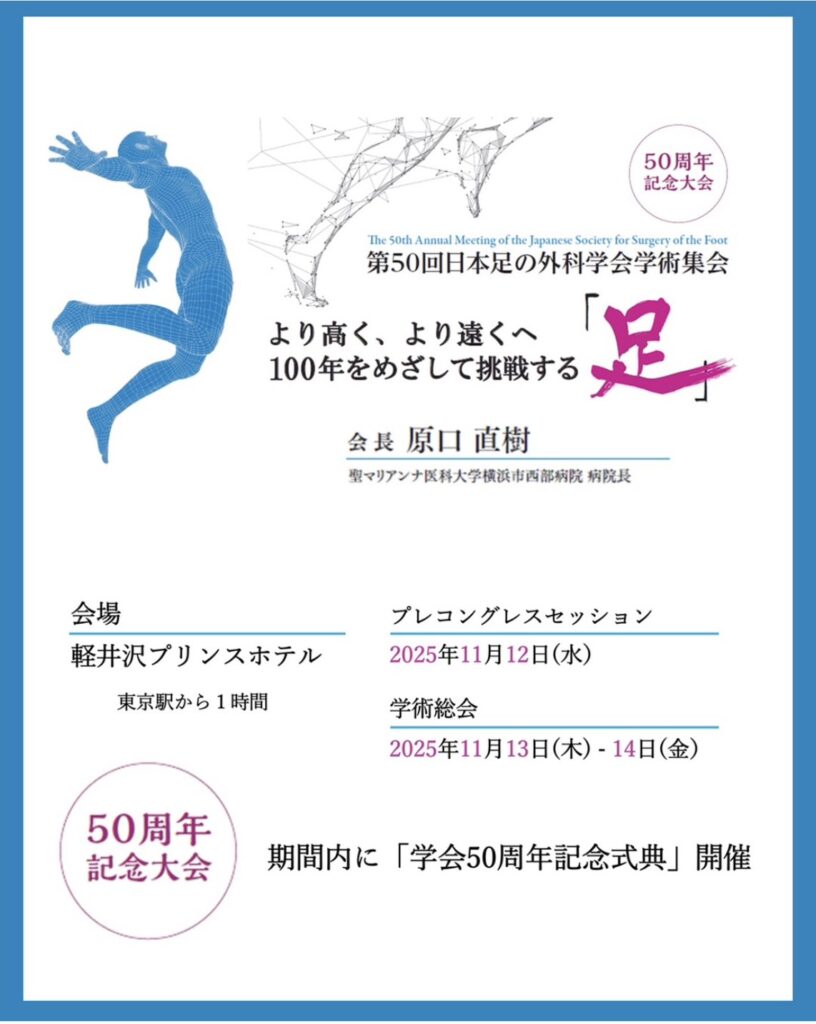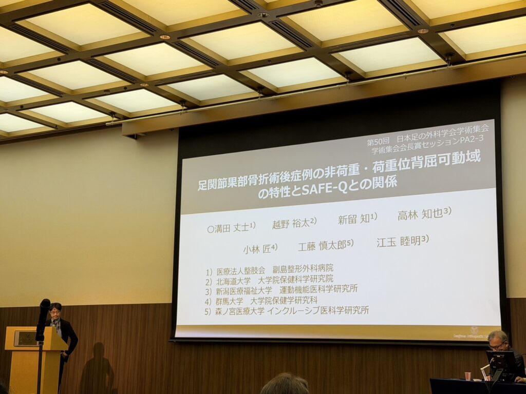 11月13日(木)、14日(金)に長野県軽井沢市の軽井沢プリンスホテルで開催された『第50日本足の外科学会学術集会』に当院理学療法士の溝田が参加・発表しました。
