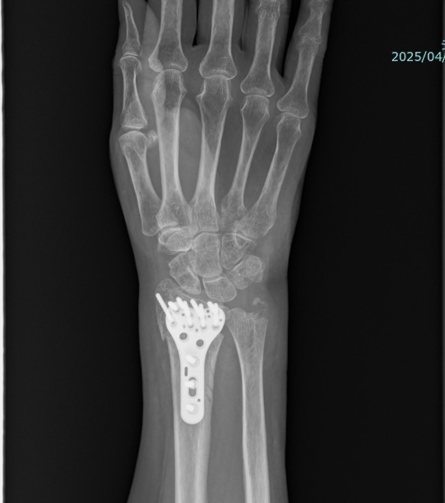 A)骨折に限らず、手首の痛みや、しびれなど気になることがありましたら受診していただきご相談ください。