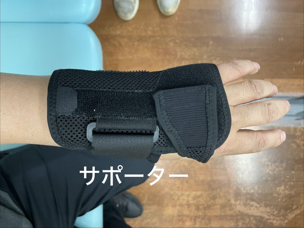 その後、骨折の型や内固定の安定性、痛みや腫れの状態を確認しながらサポーターへ移行し、早期から手関節の可動域訓練を開始します。